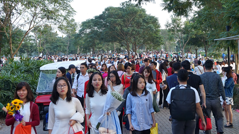 Công viên Yên Sở cũng không tránh được cảnh đông đúc ngay từ đầu cổng.