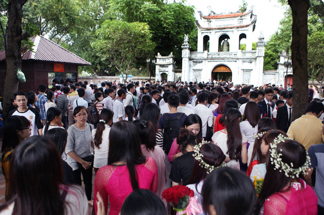 Khung cảnh xếp hàng chờ mua vé tại văn miếu.
