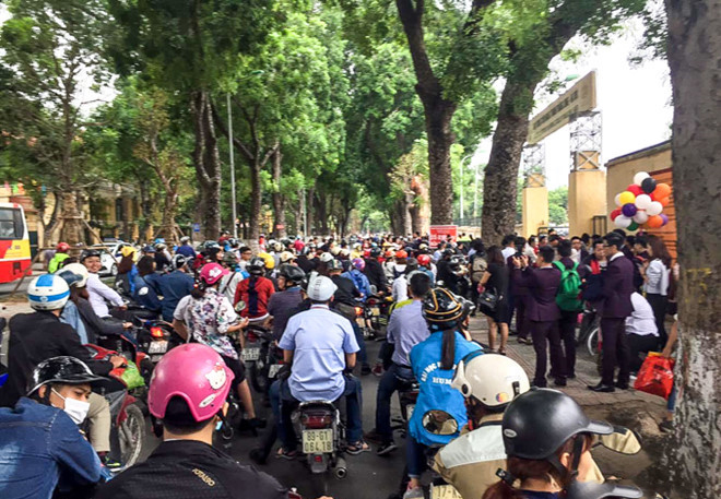 Khung cảnh đường Hoàng Diệu tắc nghẽn vì sinh viên xếp hàng gửi xe vào Hoàng Thành.