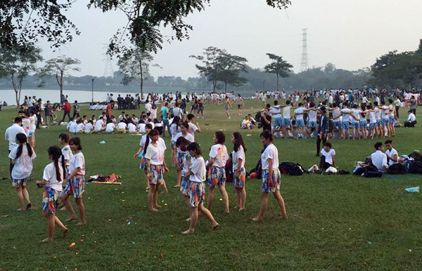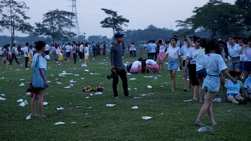 Sinh viên xả rác bừa bãi đang phá hoại cảnh quan của công viên Yên Sở.